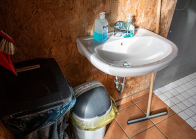Stromkabel heraus, in die Steckdose gesteckt… leider kein Strom. Mehrere Versuche, jemanden zu erreichen, scheitern. Schade, wir hätten gerne hier verweilt. Ein letzter Blick ins Toilettenhäuschen zeigt, dass dort die Sicherung ist. Wir schalten sie ein und probieren es mit dem Mixer… und tatsächlich, Strom! Wir bleiben.