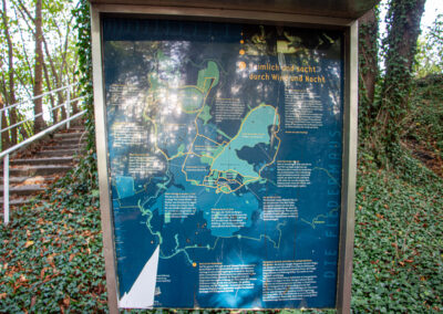 Heute gehen wir zum Kalkbergwerk. Der Fußmarsch ist anstrengend, aber die Aussicht entschädigt für den beschwerlichen Weg. Nach einer Pause am Karl-May-Platz, wo es in diesem Jahr wegen Corona keine Karl-May-Spiele gab, wandern wir zum kleinen See. Die Enten schnattern und schwimmen auf uns zu. Lea balanciert auf einem Baustamm, der ins Wasser ragt.