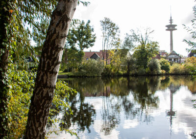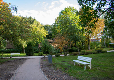Auf dem Rückweg zum Stellplatz schaut sich Gitti noch die Kirche von innen an. Wir genießen Kaffee, Cola und Apfelsaft zusammen mit dem köstlichen Kuchen. Anschließend gehen wir über den Friedhof zum Großen See. Zuerst sehen wir Erinnerungssteine für die Vertriebenen. Der große See ist einmalig schön; viele Enten ziehen ihre Bahn, tauchen und schnattern. Wir sind froh, dass wir einen Tag länger geblieben sind.